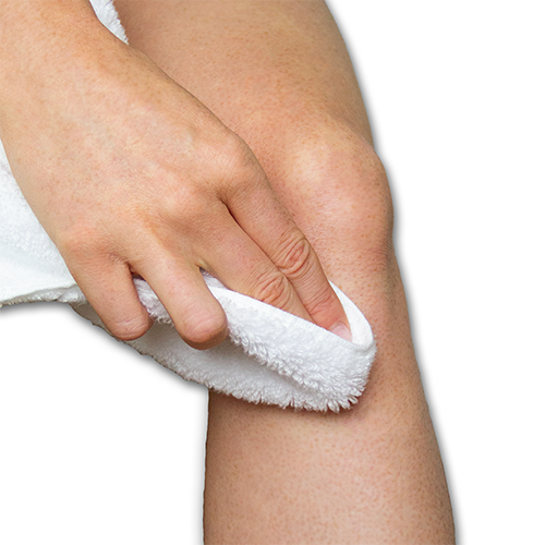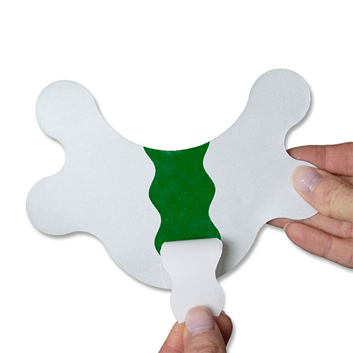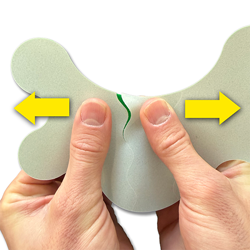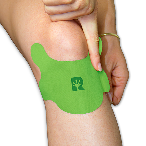 4. Bend knee at 45°, align patch below knee cap, & press center firmly