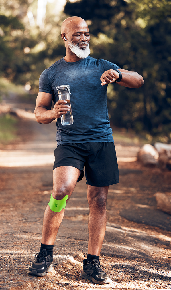 4. Bend knee at 45°, align patch below knee cap, & press center firmly
